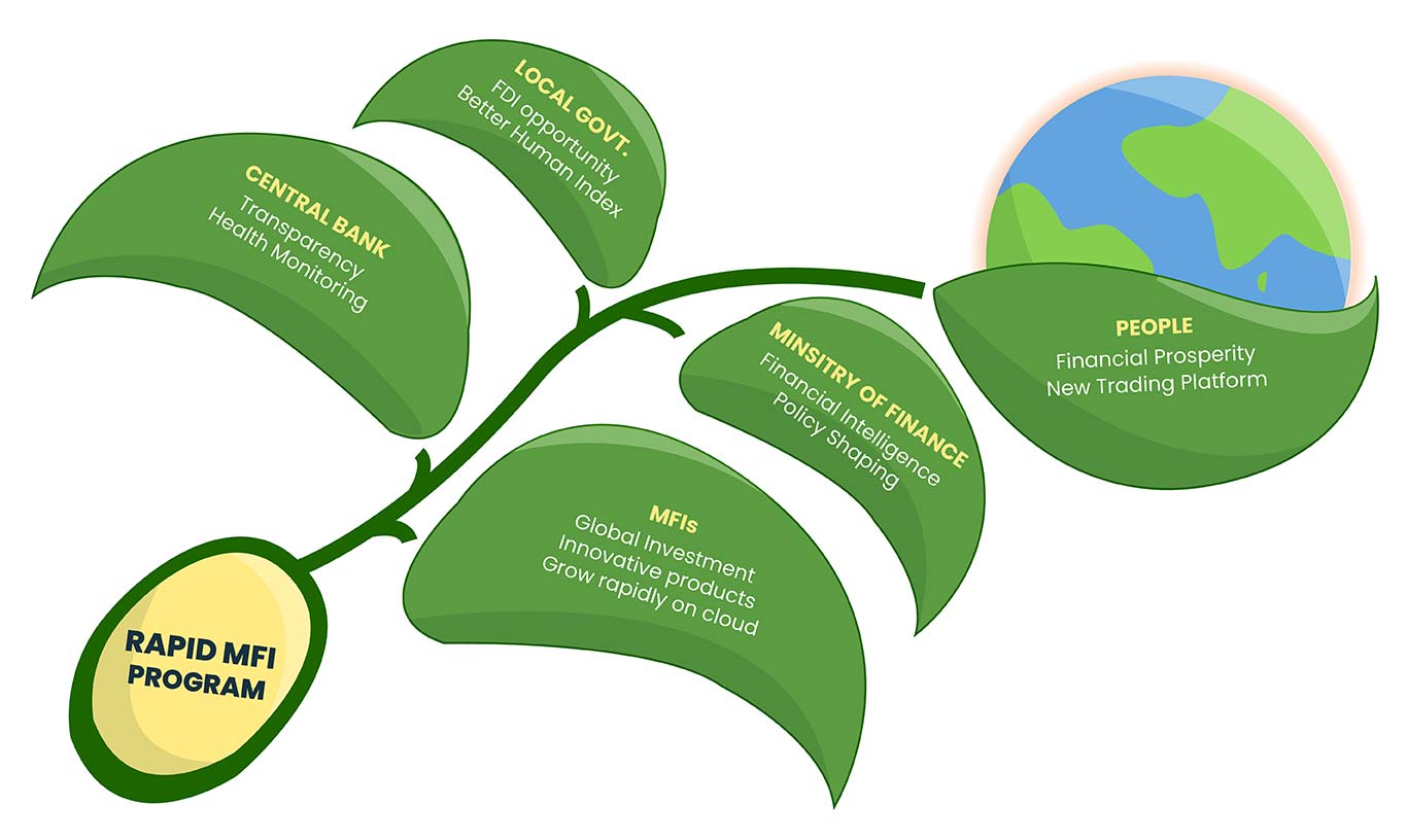 With our committed purpose to enable financial inclusion, equality and opportunity at the last mile, DanFishel has envisaged the RAPID MFI PLATFORM VISION which enables an MFI Ecosystem where Investors, Government, MFIs can mutually benefit for rapid human development locally and globally
